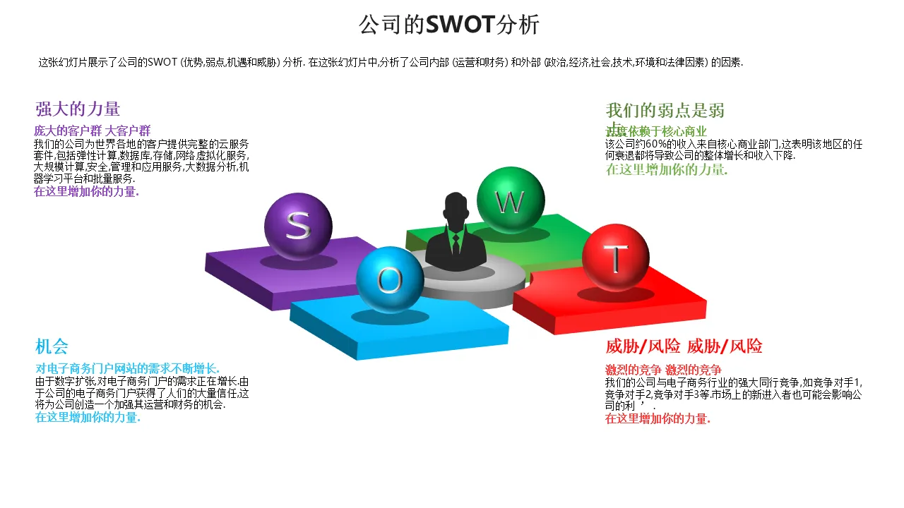 公司的 Swot 分析筹集政府债务银行机构 PowerPoint 提示 专业演示的 PowerPoint 模板