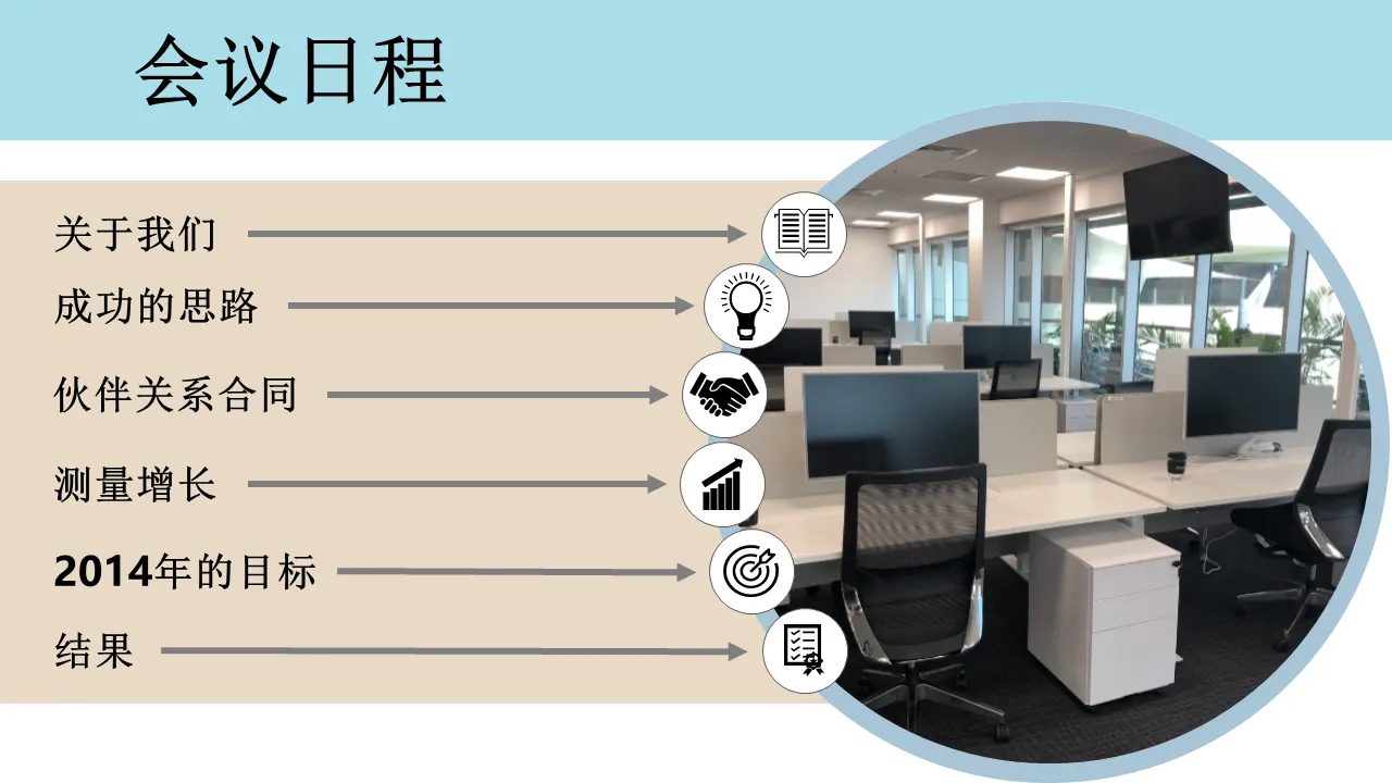 带有图标的剪切图像的议程模板设计 Powerpoint 幻灯片