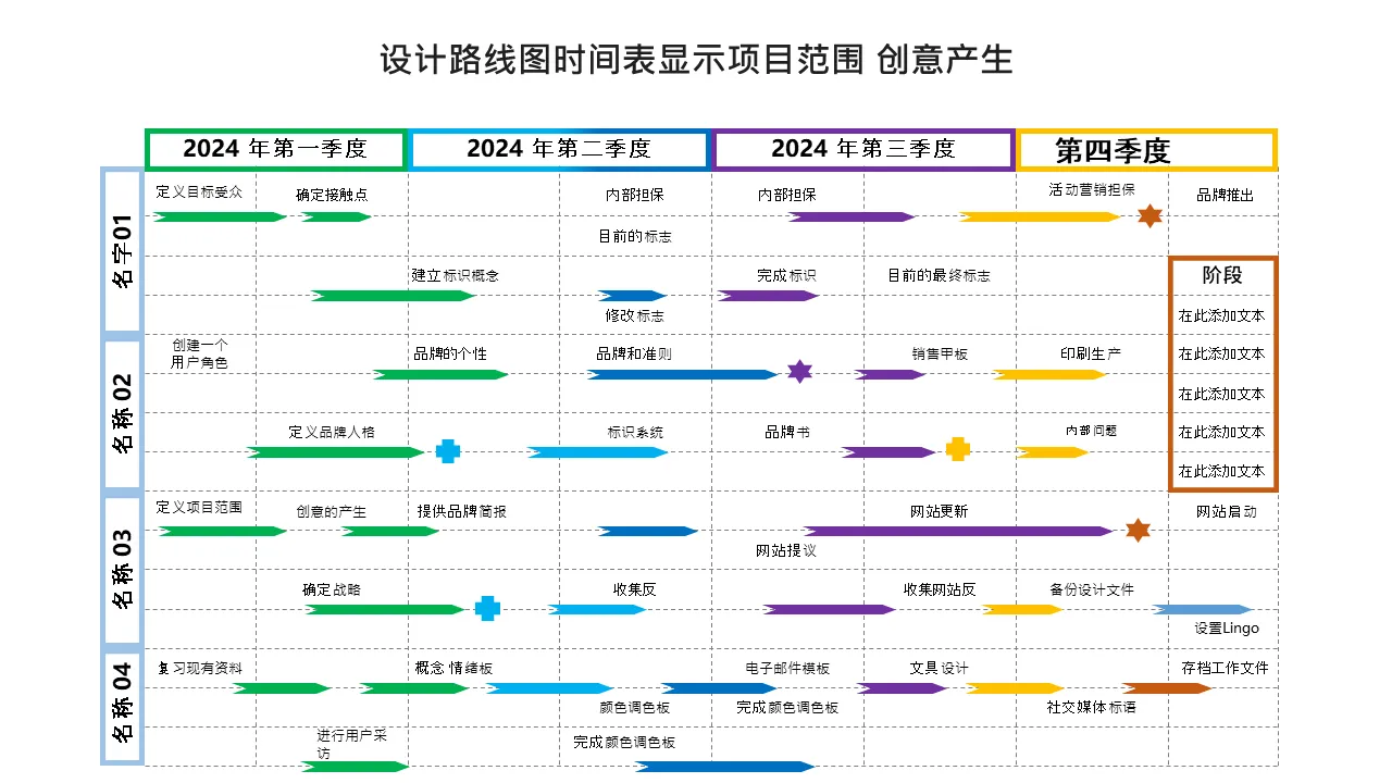 使用这个专业的 PowerPoint 模板可视化项目范围和想法生成时间表。非常适合战略规划、路线图开发和团队协调。