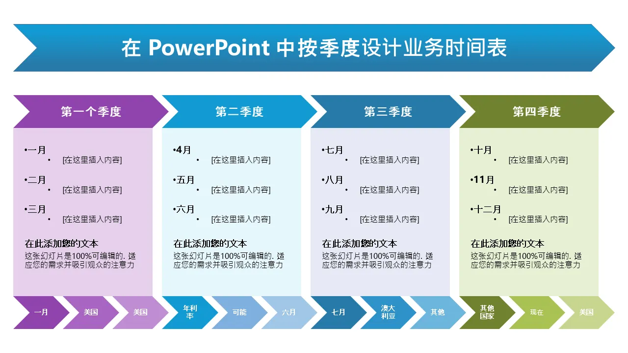 Powerpoint 的业务时间表按季度设计