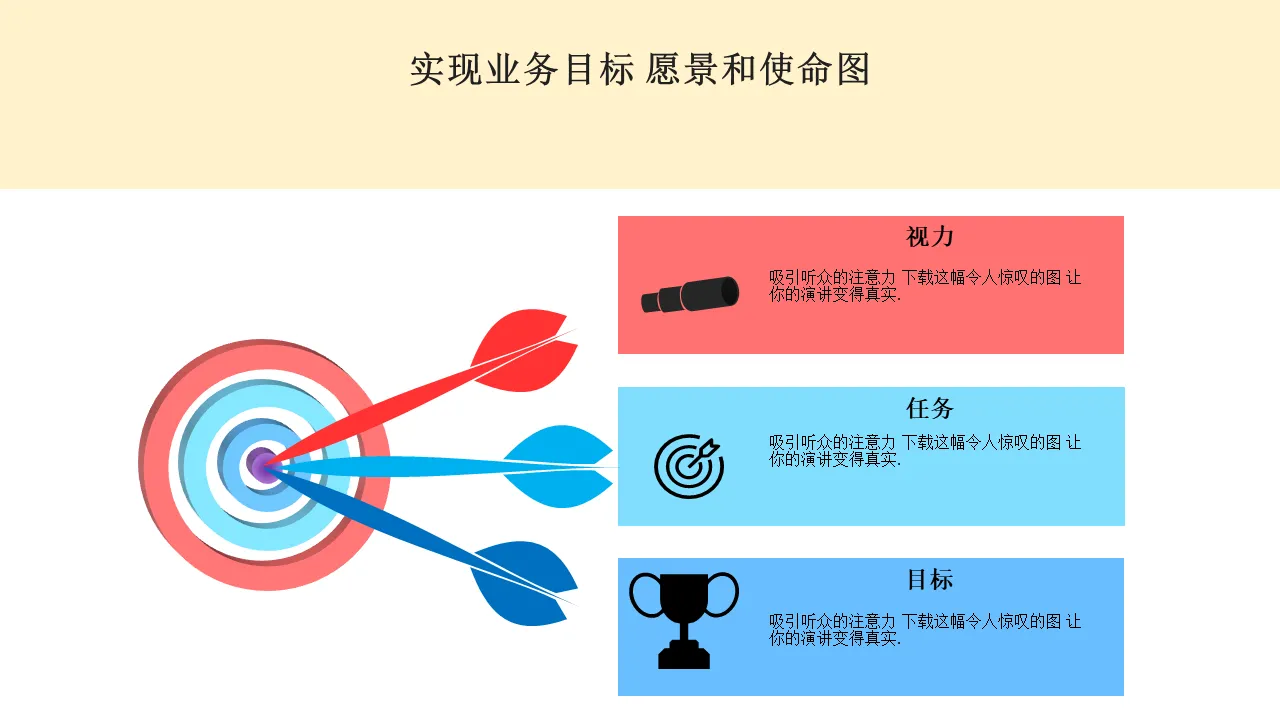 业务目标实现愿景和使命图 Powerpoint 模板