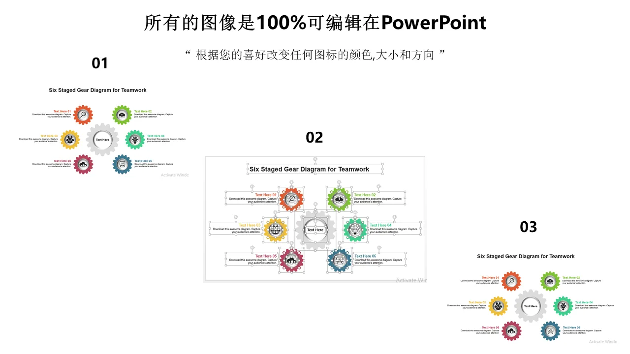 0115 团队合作的六级齿轮图 Powerpoint 模板的特点
