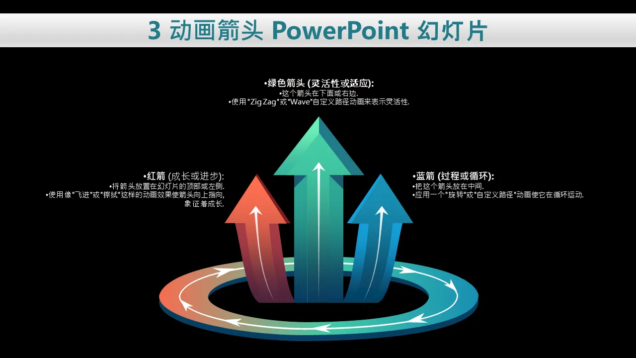 3 个动画箭头 PowerPoint 模板说明
