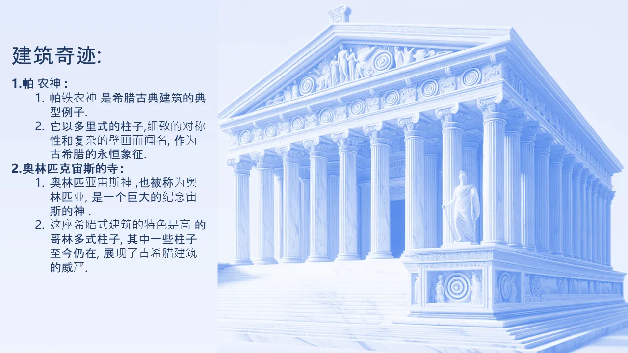 4 列动画希腊神庙 3d Powerpoint 模板的特点