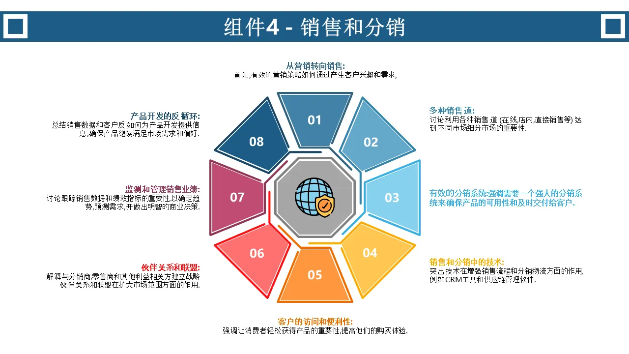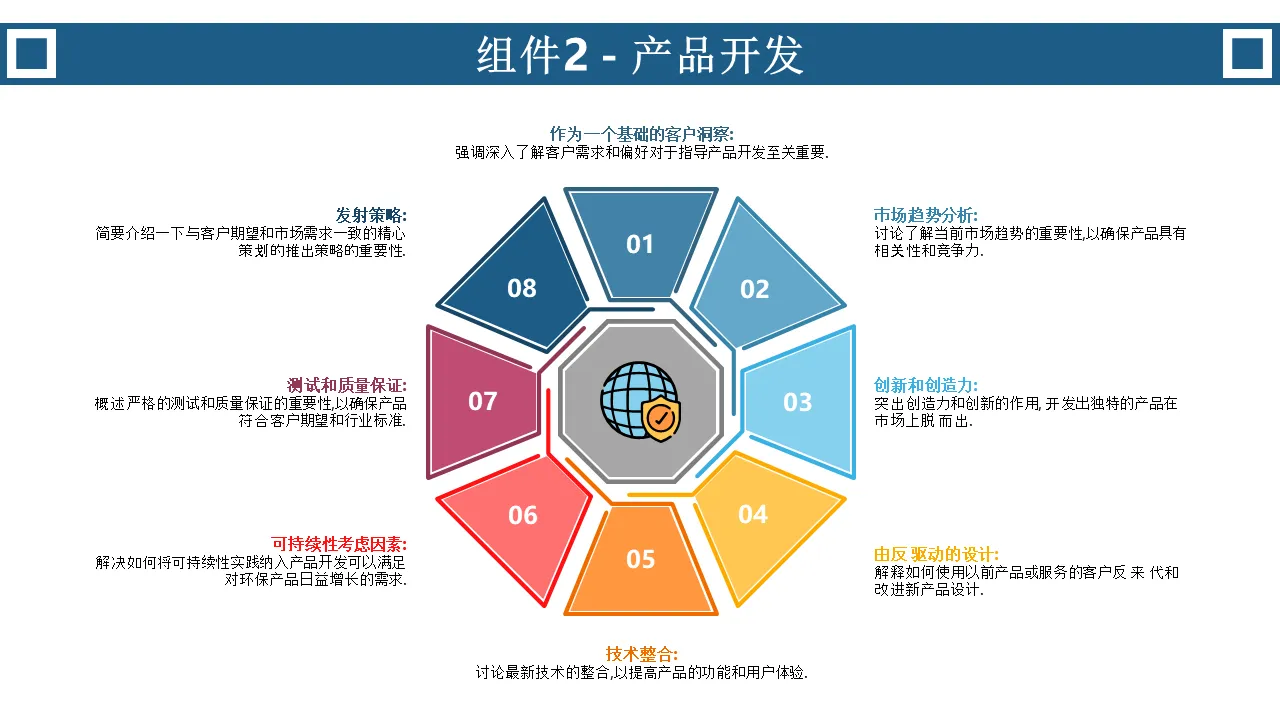 - 专业的颜色编码设计,每个飞轮部分都有可编辑的图标和文本占位符。