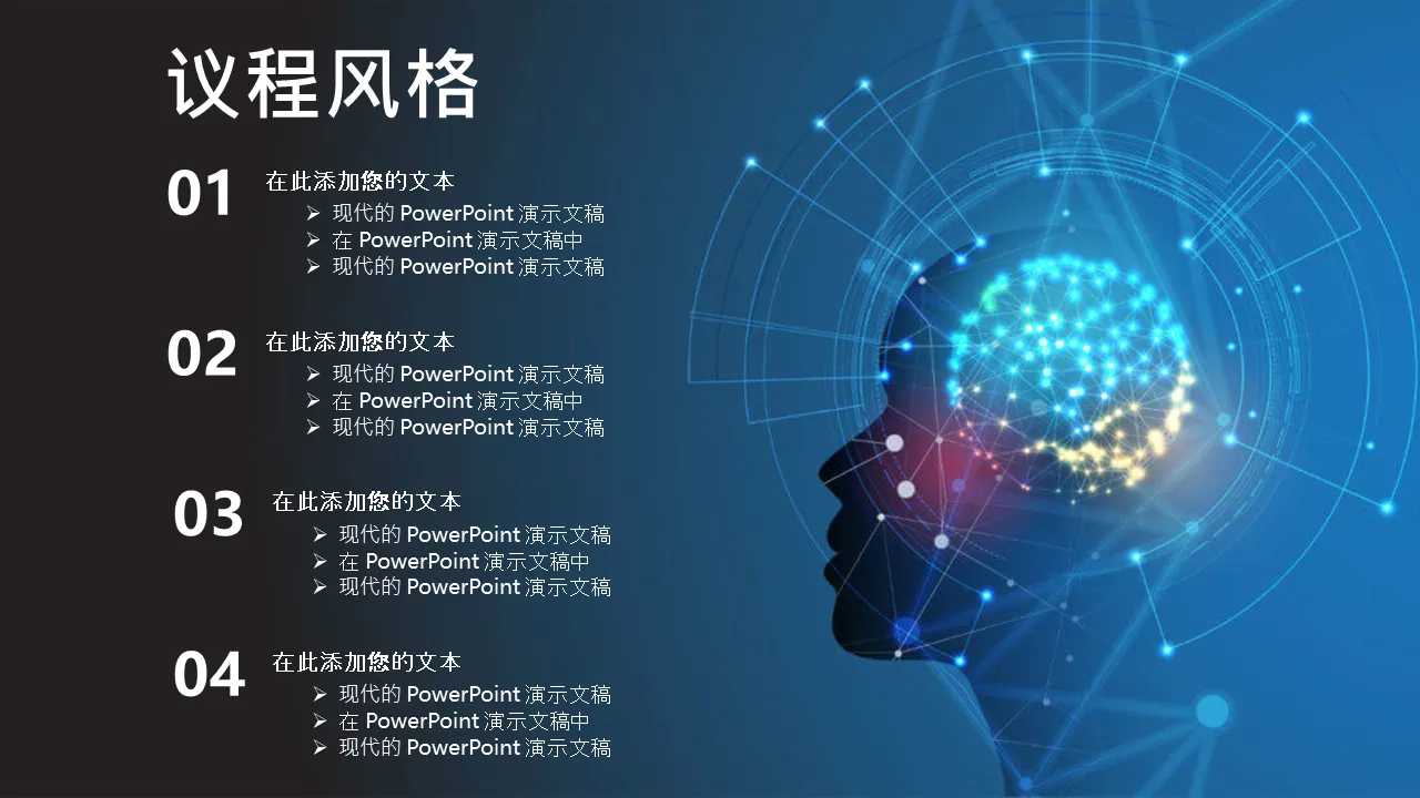 - 模块化幻灯片结构,可轻松定制内容部分