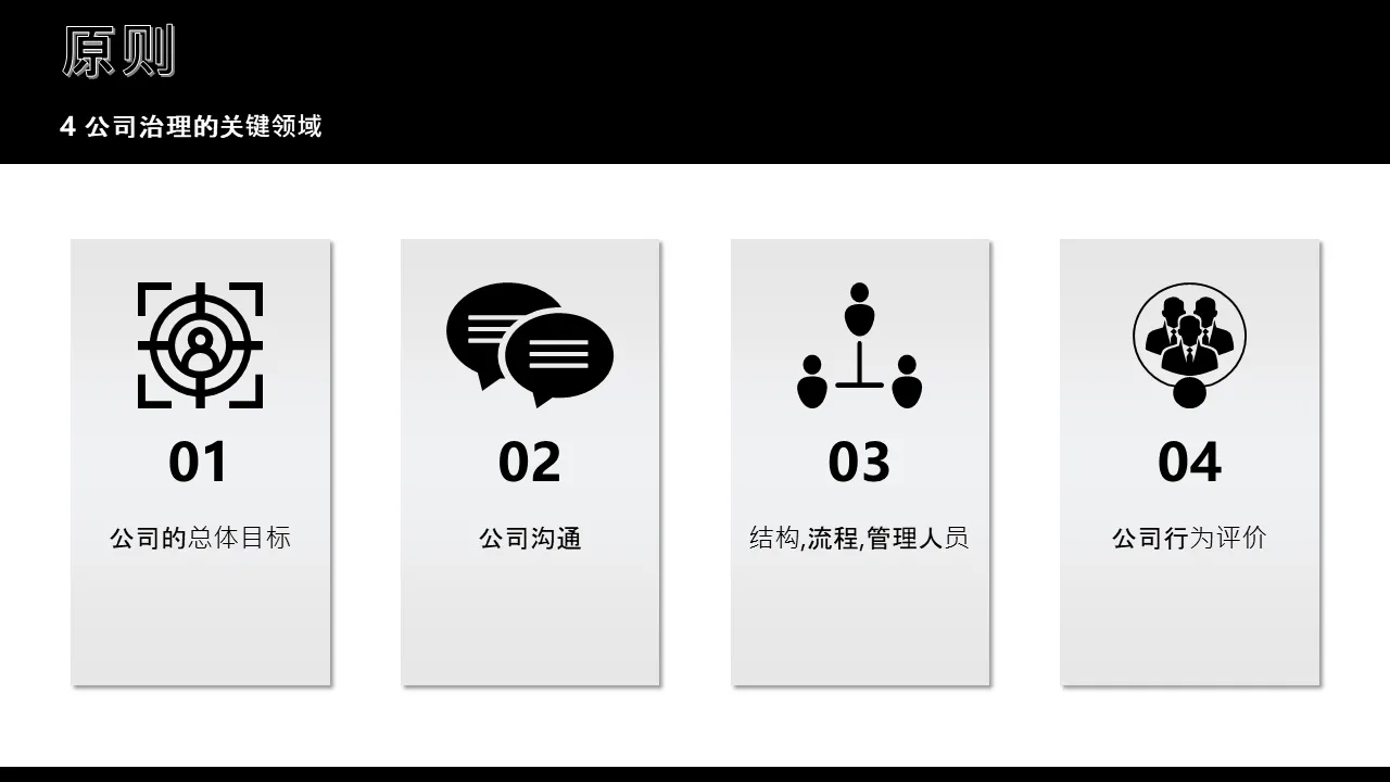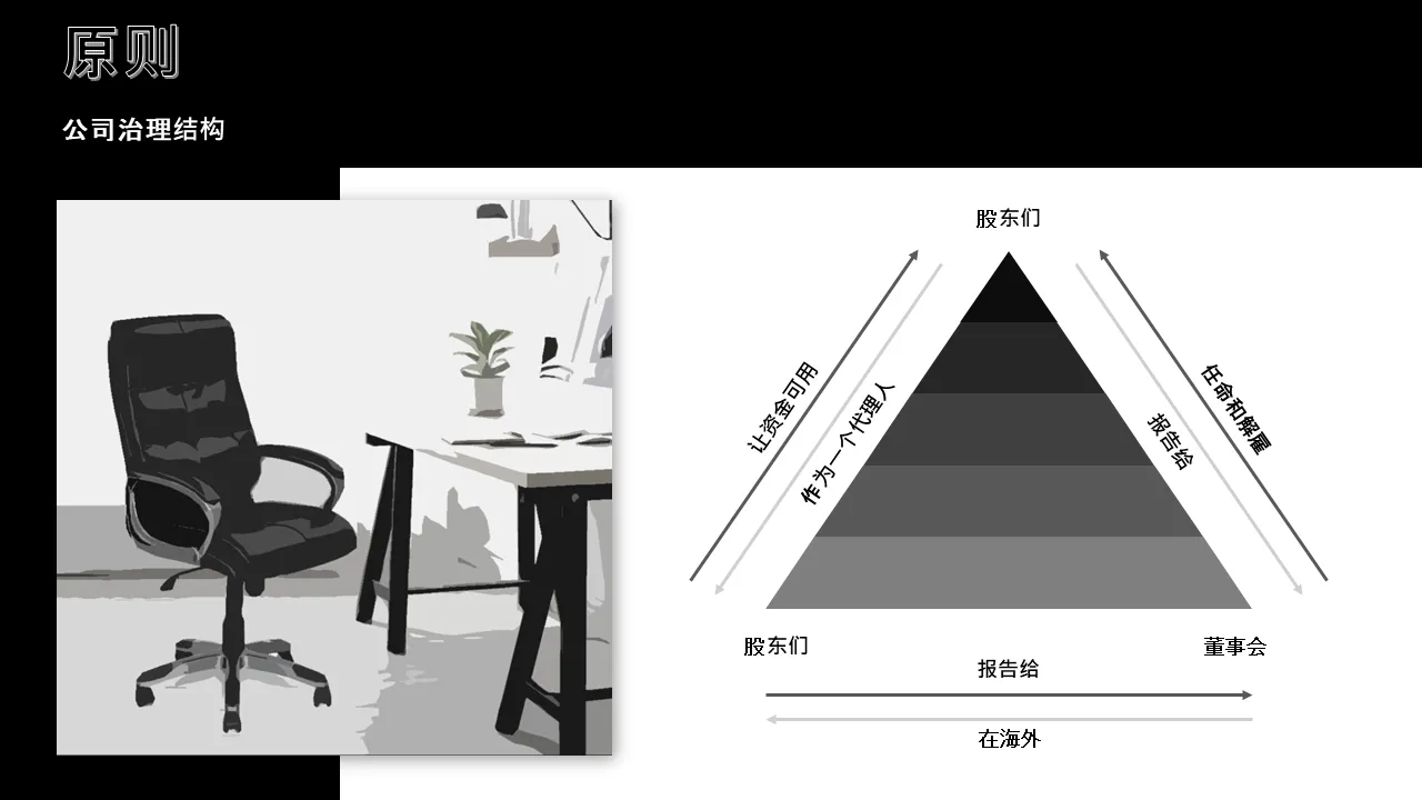 - 预先设计的治理框架幻灯片,其中包含董事会角色和职责的可视化层次结构