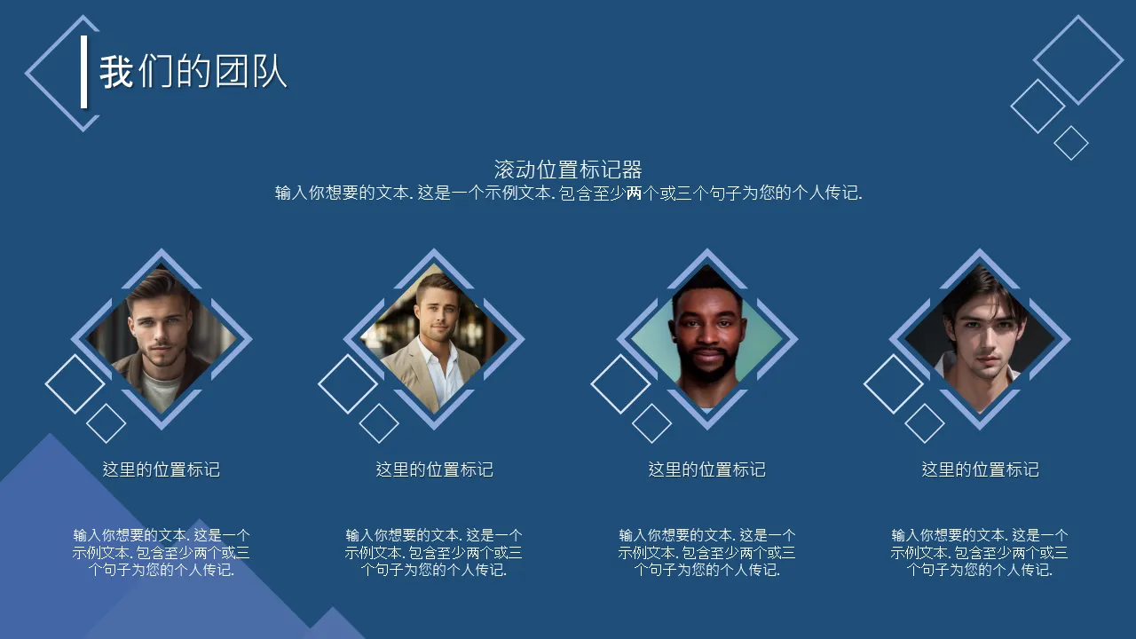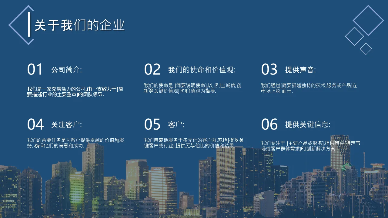 - 用于插入徽标、团队简介和品牌定位的灵活布局
