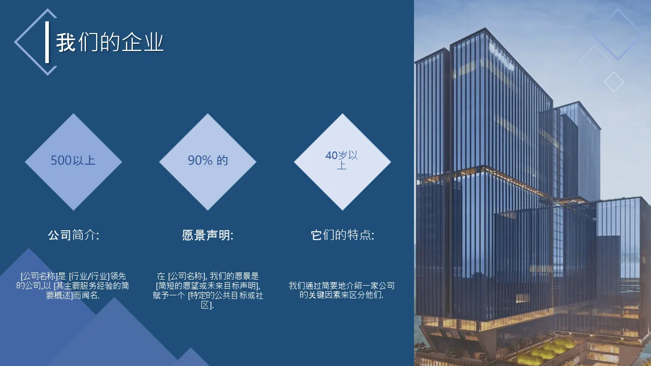 - 针对使命、愿景和公司里程碑预先设计的部分