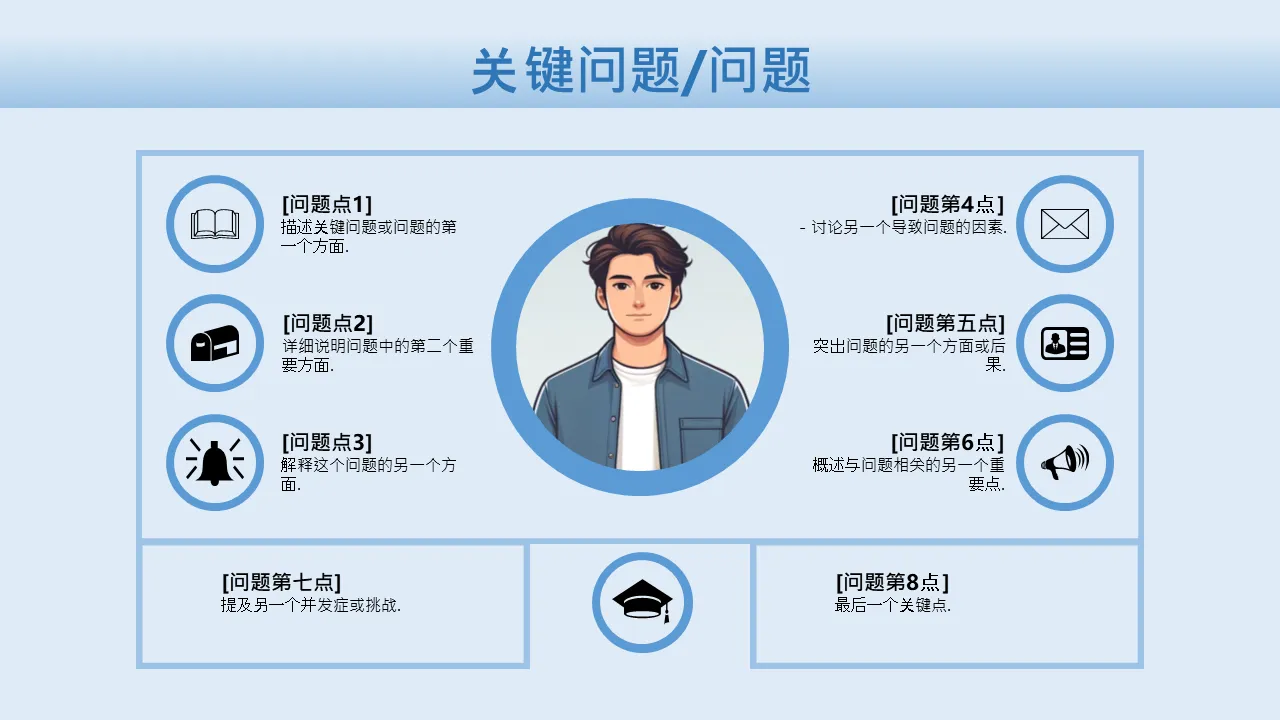 此专业会议 PowerPoint 模板旨在帮助商业专业人士在会议、高管会议或战略峰会期间提供清晰、有影响力的演示。它围绕关键发现和问题解决框架构建,非常适合以有组织的、视觉上引人入胜的格式交流复杂的想法。该模板是为需要在高风险环境中呈现数据驱动的见解和可行策略的受众而构建的。