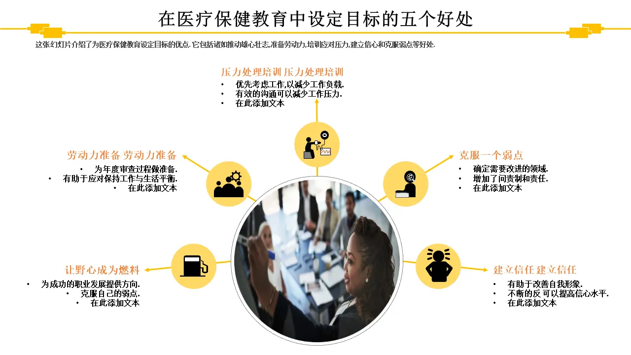 这款专业设计的 PowerPoint 模板通过结构化视觉效果、简洁的版式和现代设计语言呈现教育概念。它可以帮助演示者清晰而有影响力地传达复杂的想法,使其成为董事会会议室、虚拟会议和会议演示的理想选择。该模板平衡了视觉吸引力和信息深度,确保每张幻灯片都能为观众带来最大价值。