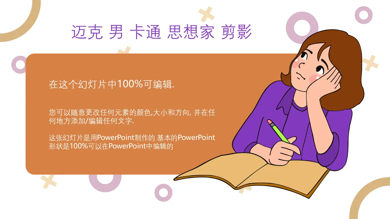迈克男卡通思想家剪贴画专业演示的 PowerPoint 模板的特点
