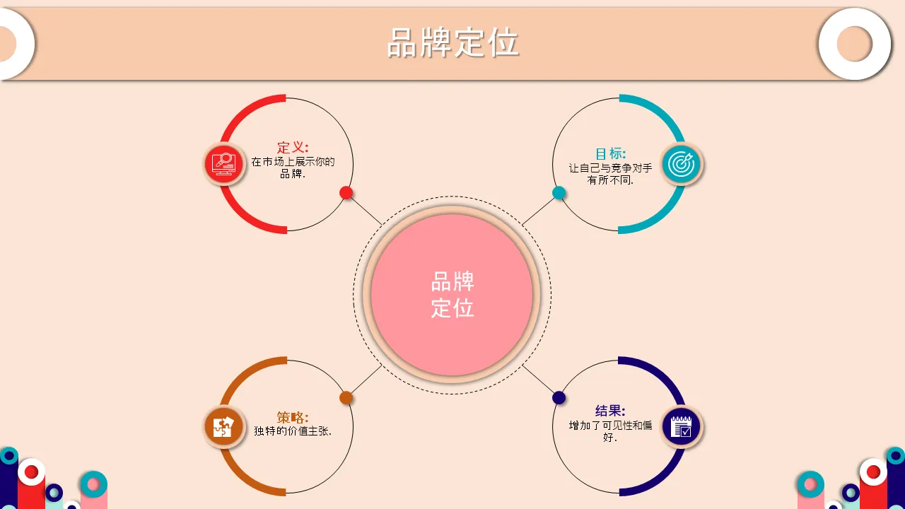 - 预先设计的幻灯片,用于品牌定位、个性和视觉信息,布局一致