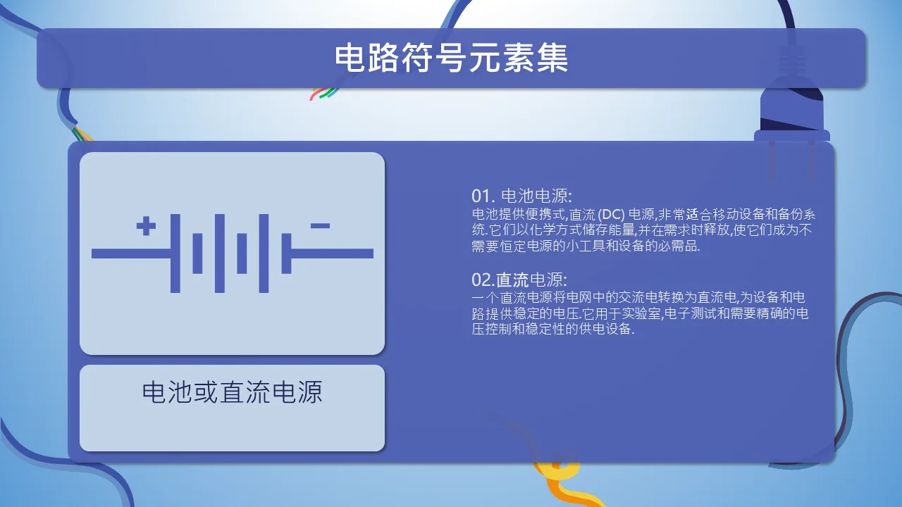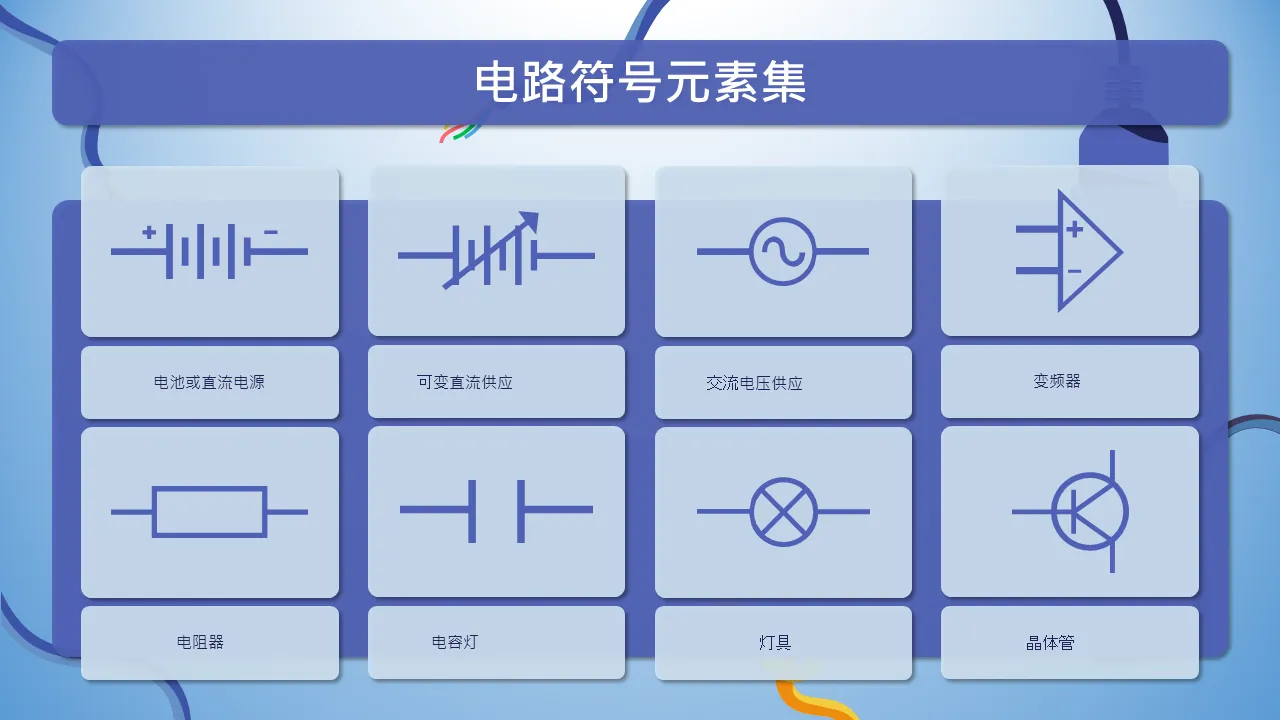 用于 Powerpoint 解释的电路符号元素集