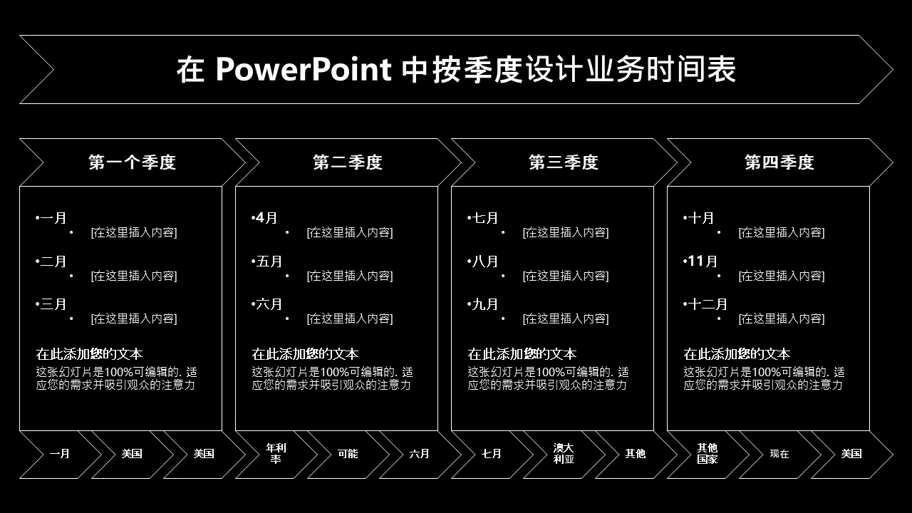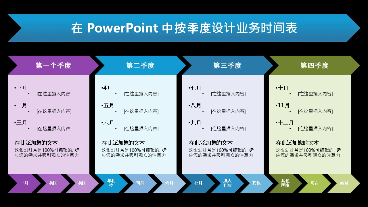 Powerpoint 的业务时间表按季度设计的特点