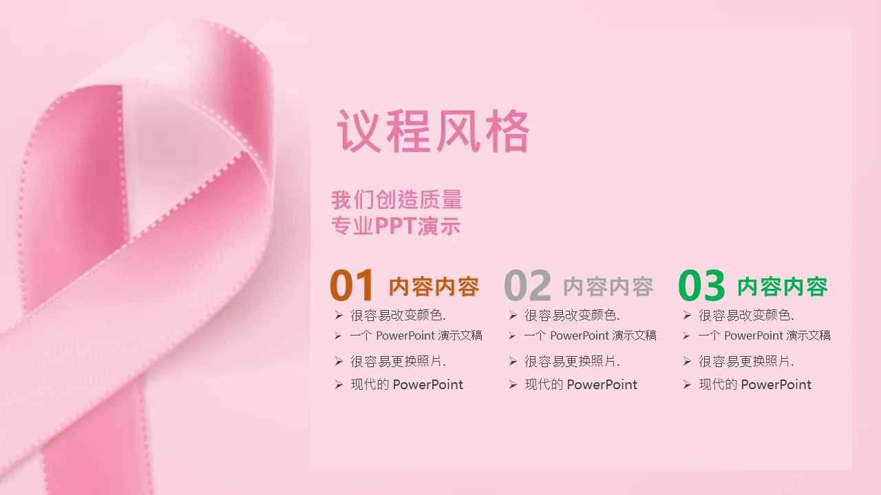 乳腺癌意识粉红丝带 PowerPoint 演示模板