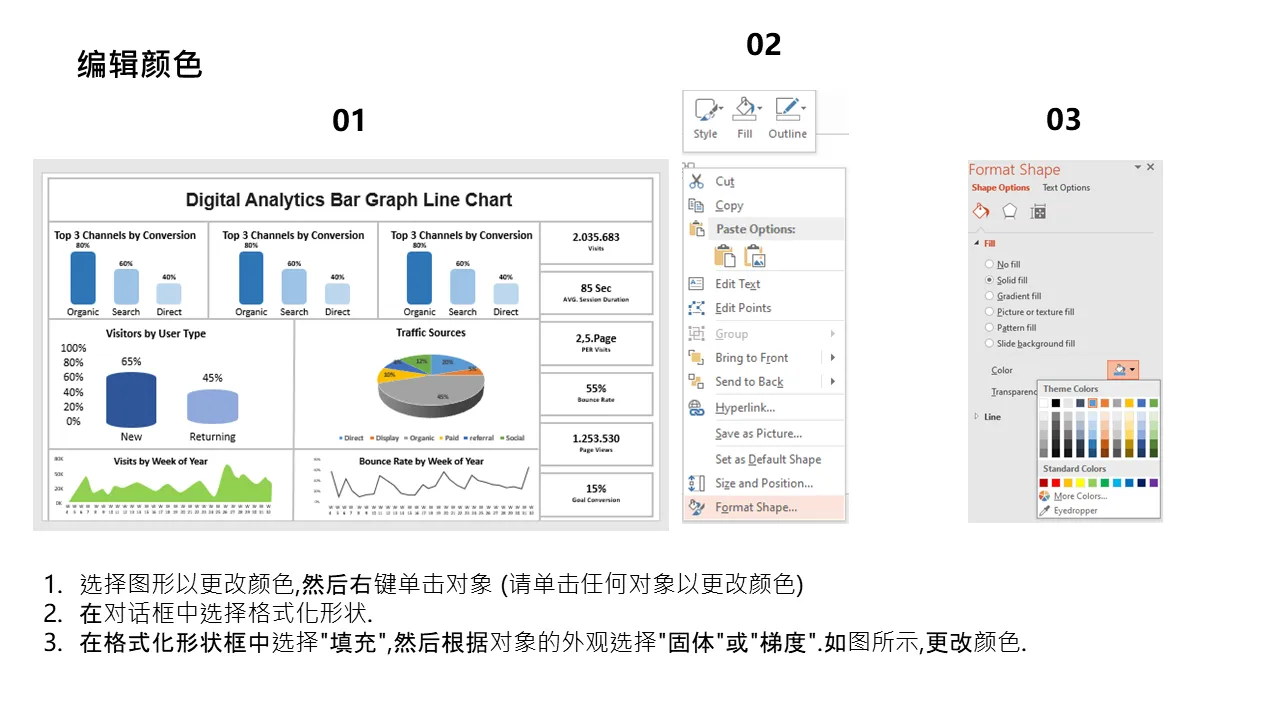 - 包括可编辑的图表轴和图例,用于定制数据演示