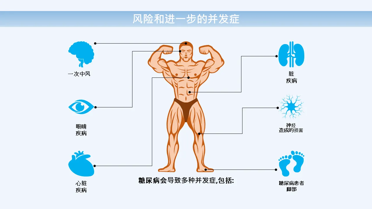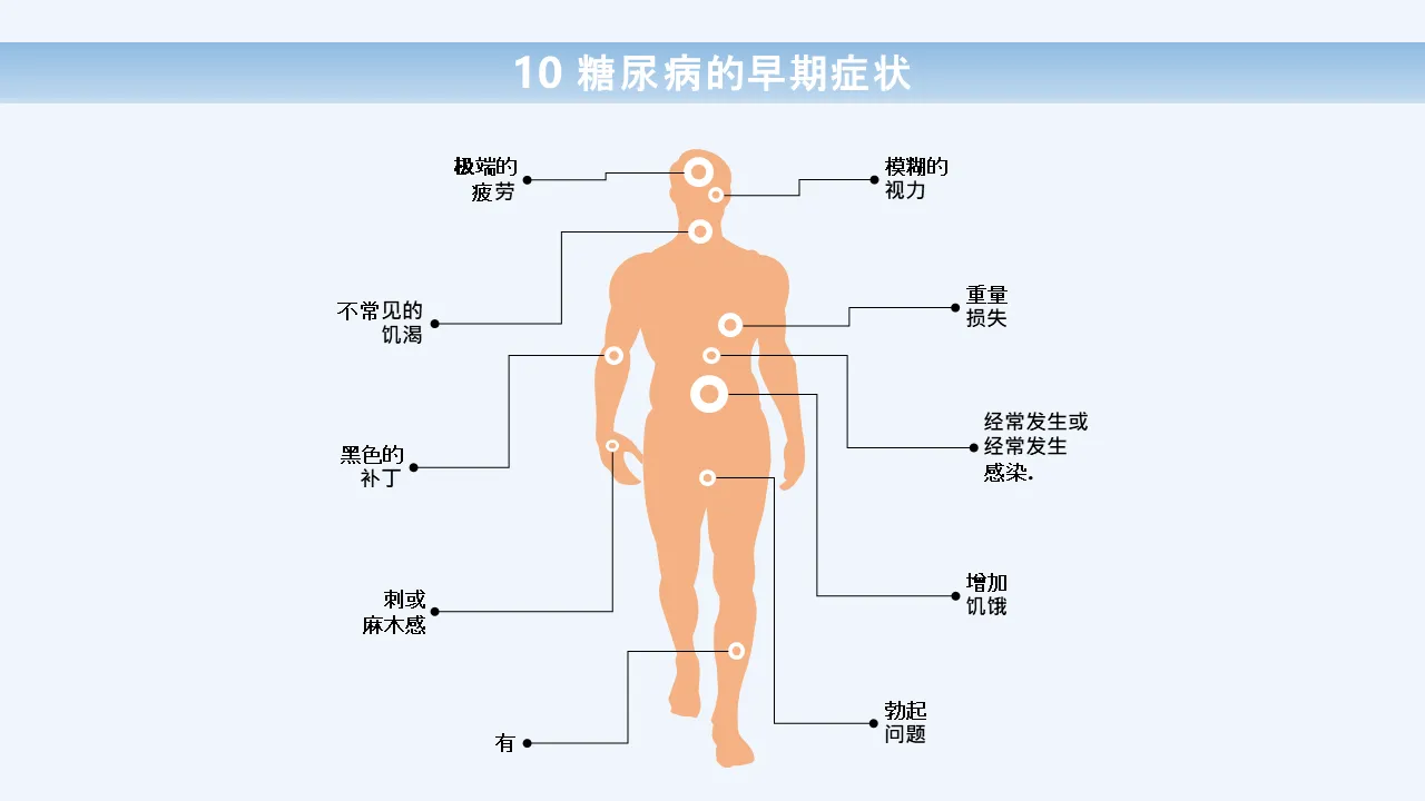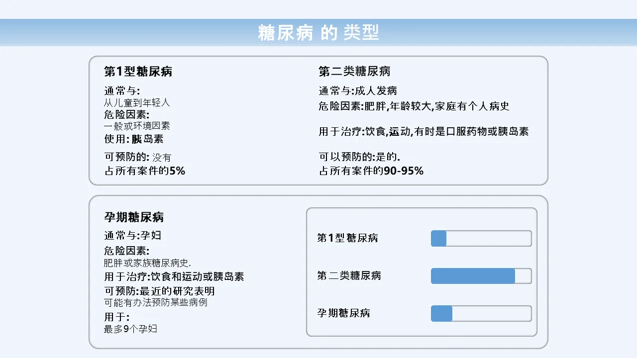- 视觉结构幻灯片,涵盖糖尿病症状、原因和预防