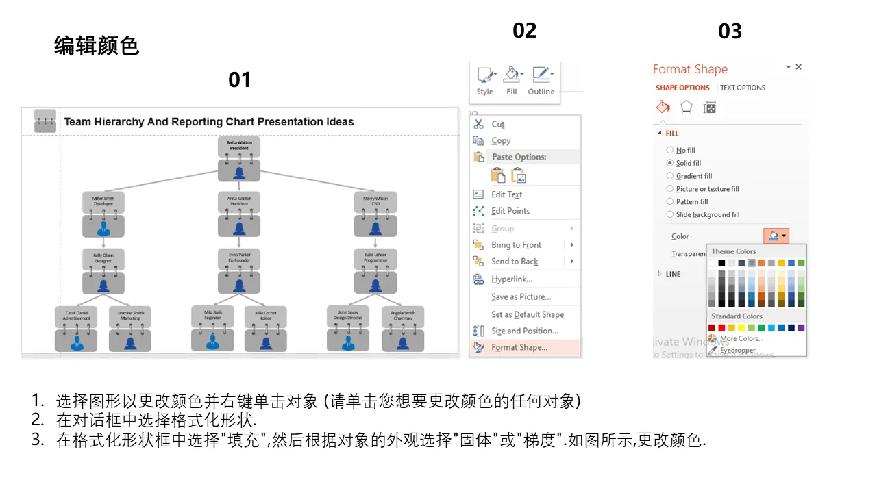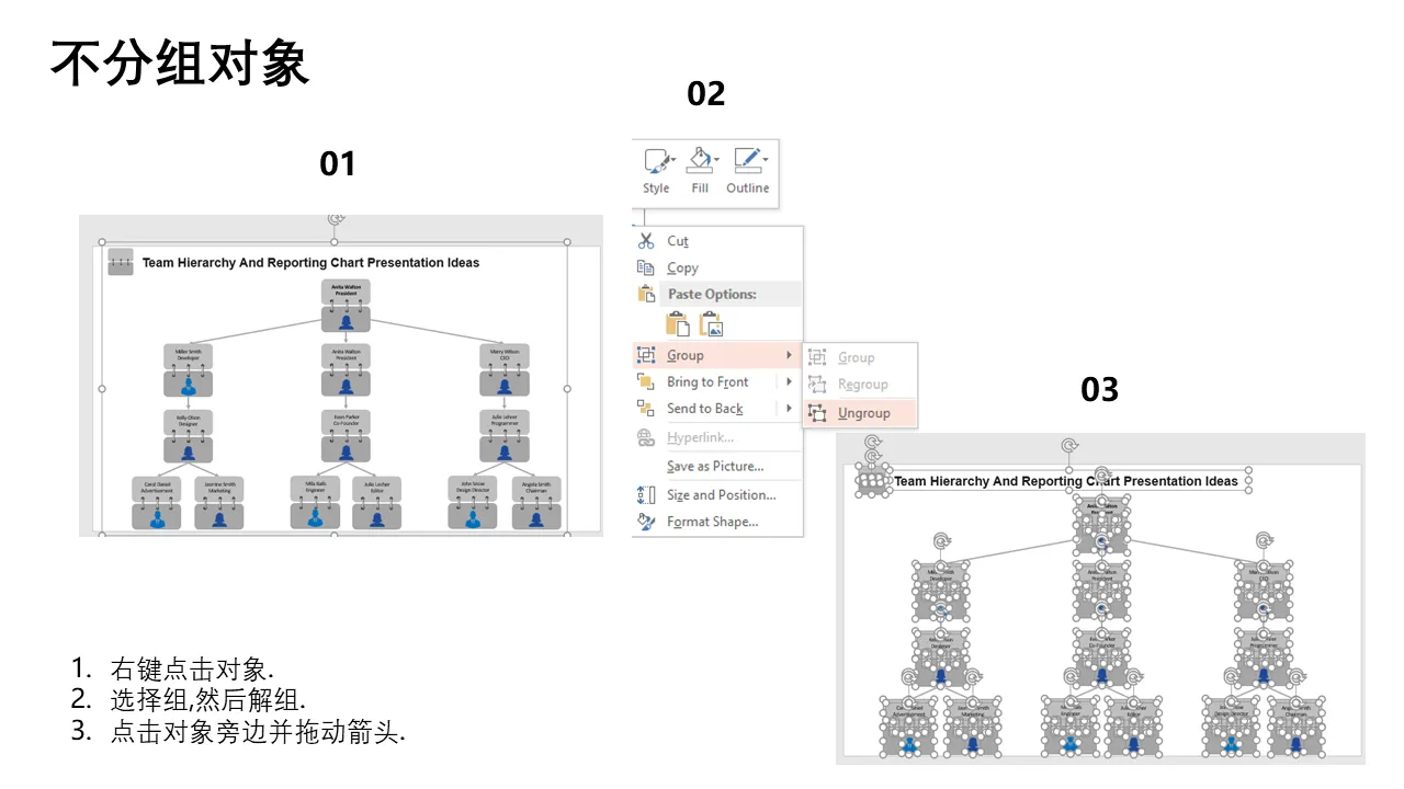 团队层次结构和报告图表演示想法说明