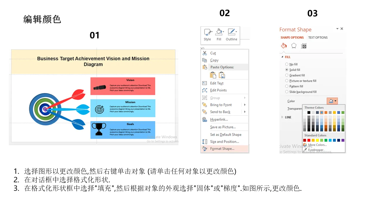 业务愿景任务图 PowerPoint 模板说明