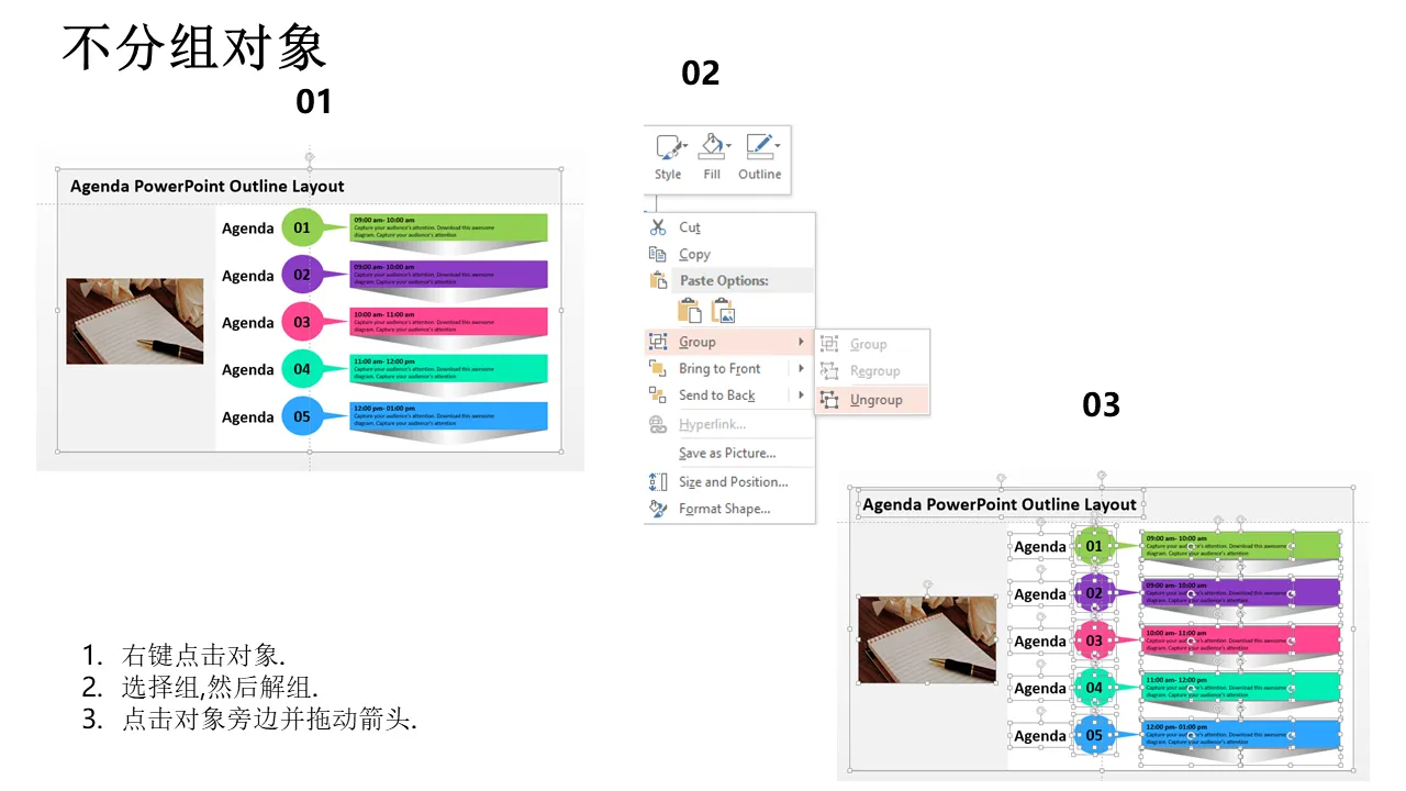 议程 Powerpoint 大纲布局的特点