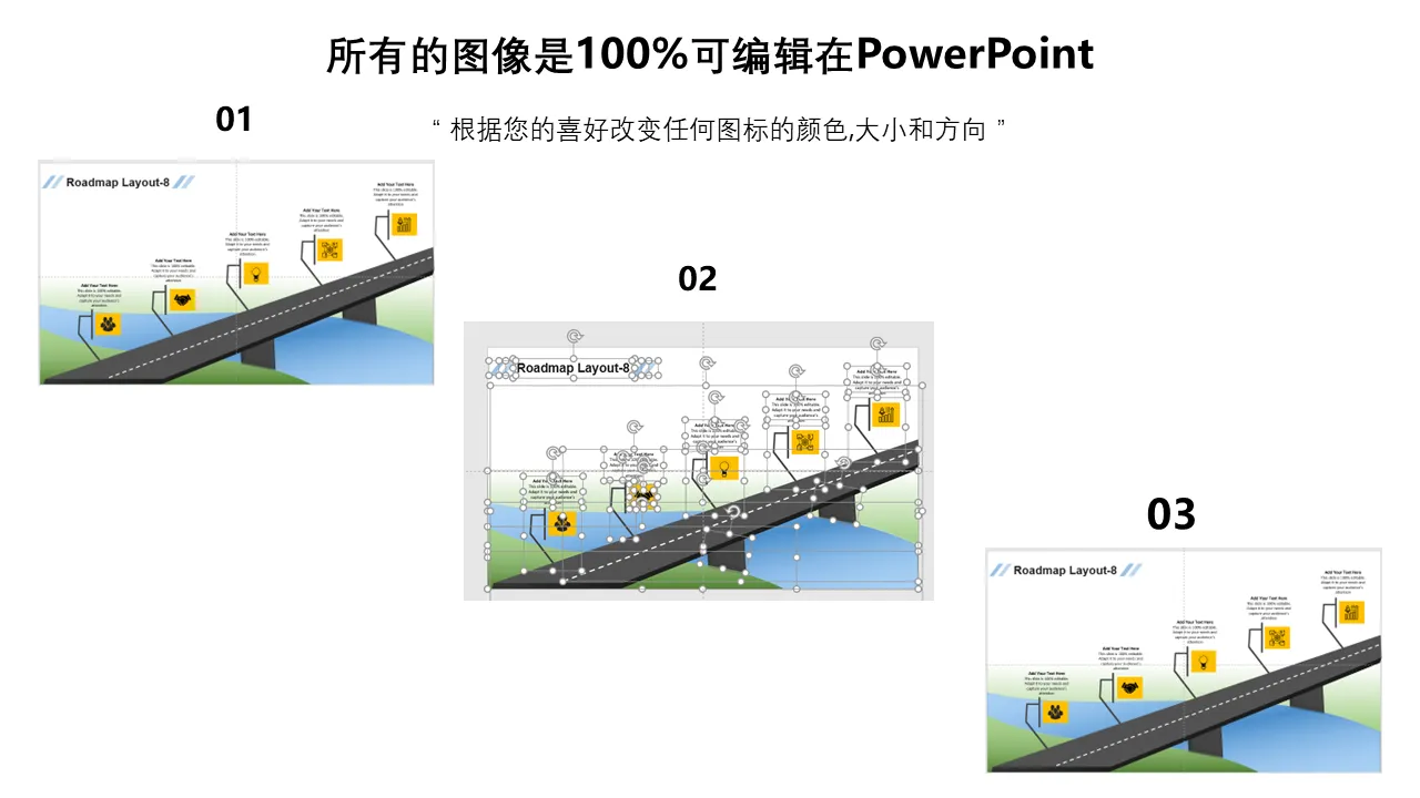 用于商业演示的路线图 PowerPoint 幻灯片的特点